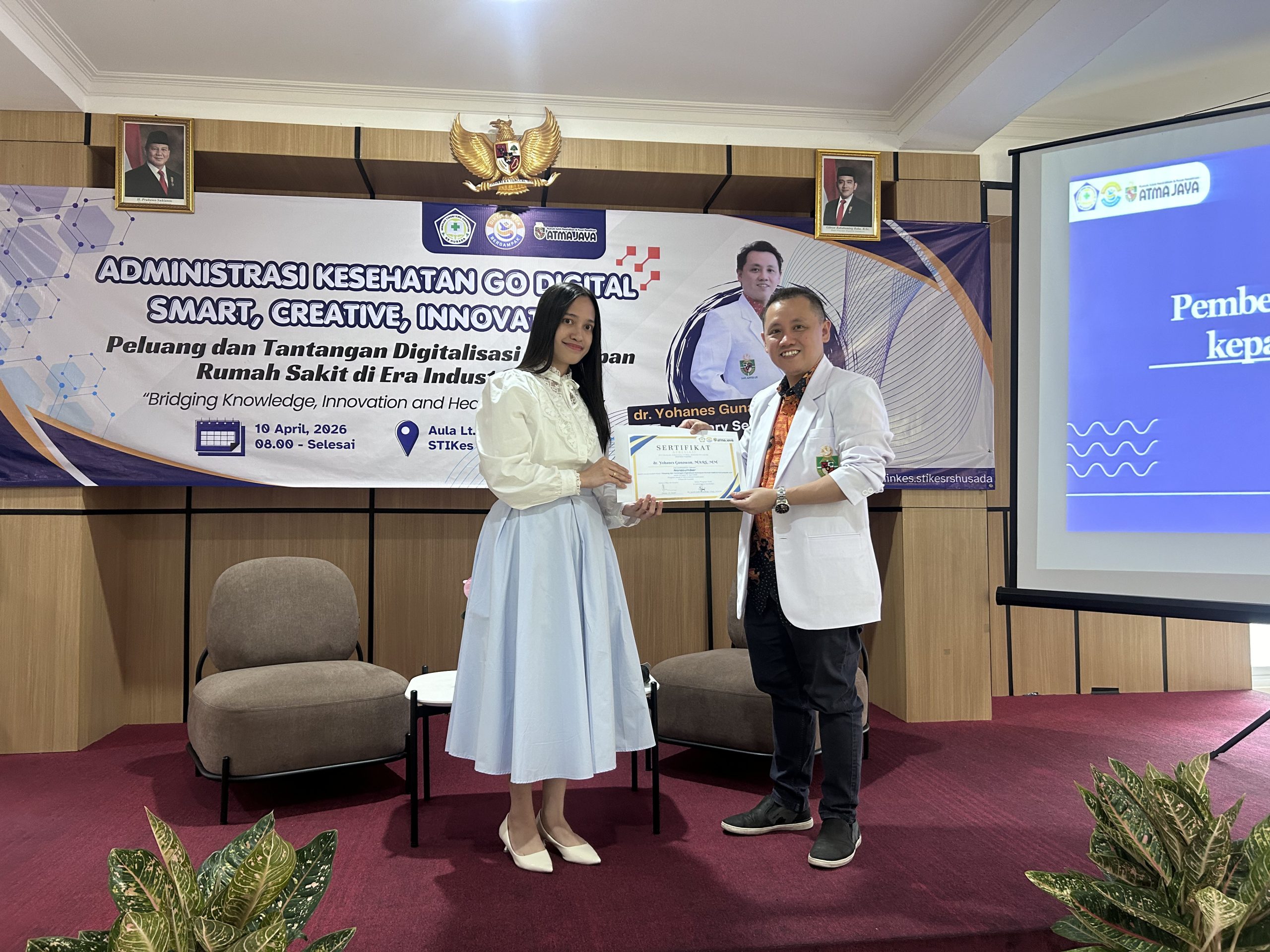 HumasSTIKesRSHusada – STIKES RS Husada menyelenggarakan seminar bertajuk “Administrasi Kesehatan Go Digital: Smart, Creative, Innovative” pada 10 April 2026 di Aula Lt. 1 STIKES RS Husada. Kegiatan ini mengangkat tema peluang dan tantangan digitalisasi kearsipan rumah sakit sebagai upaya meningkatkan kualitas pengelolaan administrasi kesehatan di era industri 4.0.
